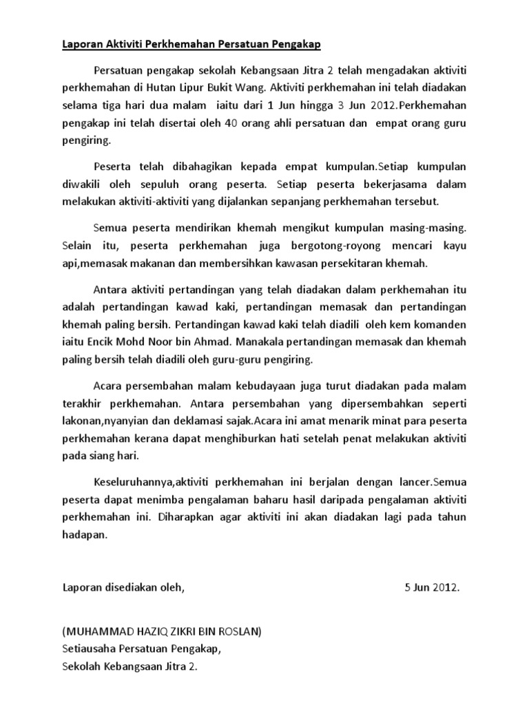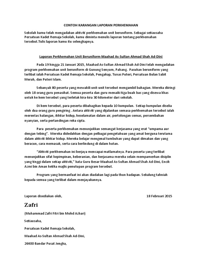 Contoh Karangan Laporan Perkhemahan Pdf